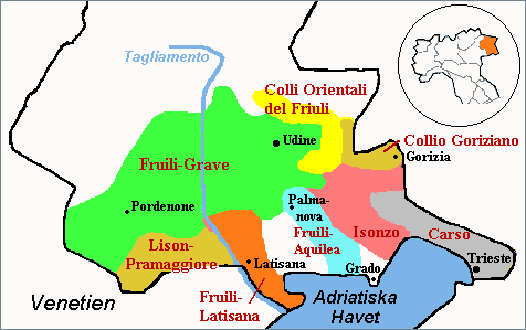 Friuli-Venezia Giulia. [ Allmänt / Kvalitetsindelning / Områden (inkl. karta) ]
